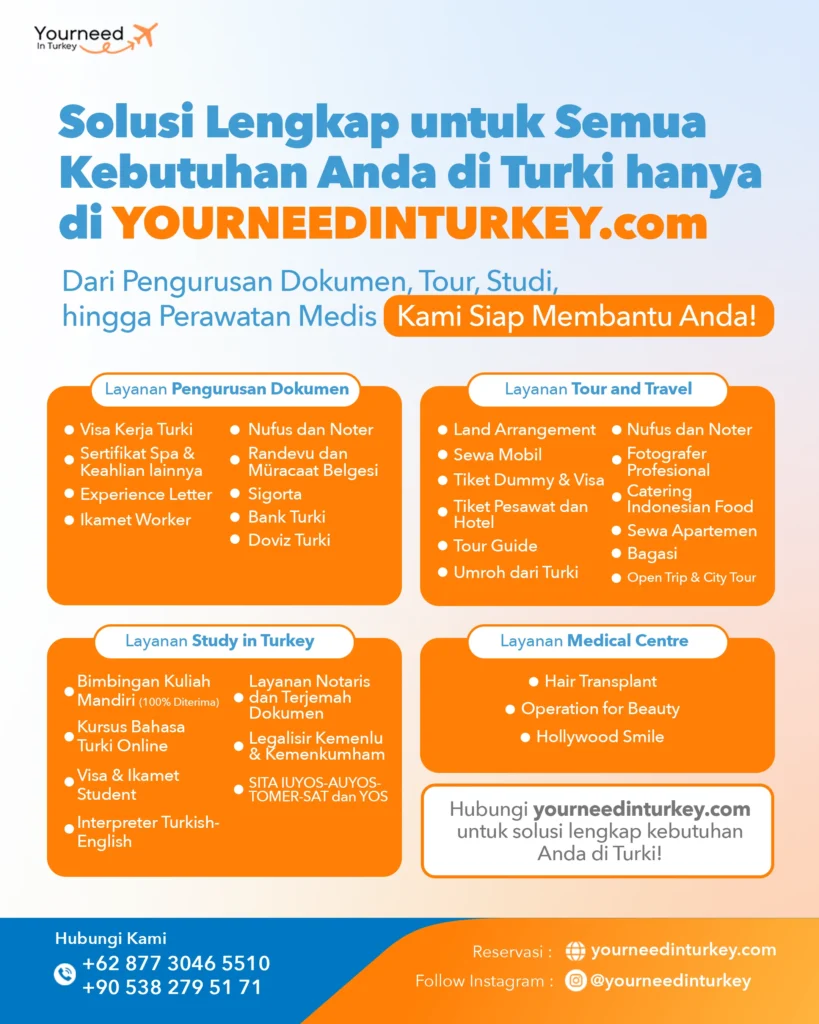 Semua kebutuhan Anda di Turki kini gak perlu khawatir lagi. Segera hubungi untuk dapatkan penawaran terbaik!